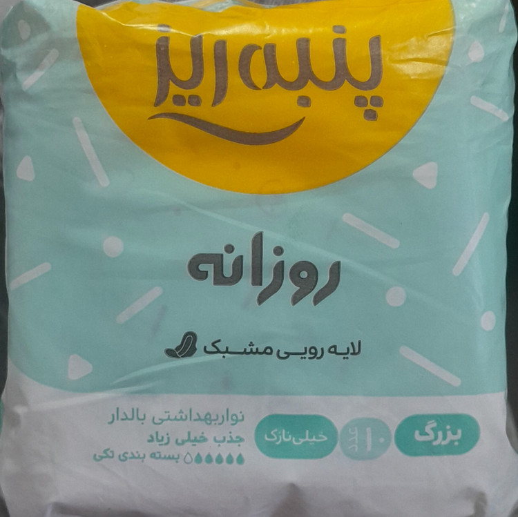 نوار بهداشتی بالدار پنبه ریز مدل روزانه سایز بزرگ مشبک بسته 10 عددی مسافرتی